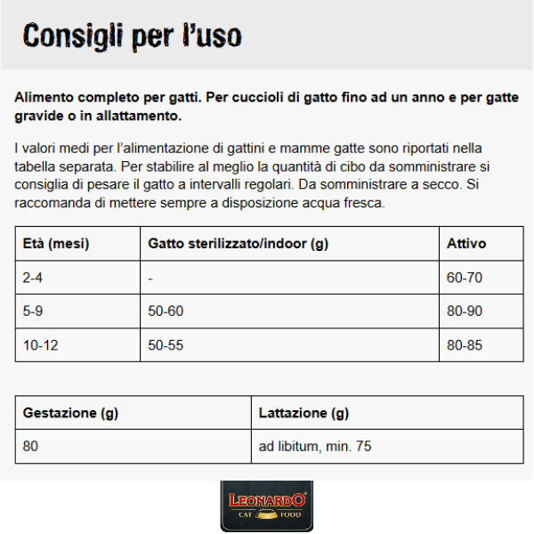 - Indicato per: Gattini fino a 12 mesi di età e gatte in fase di gestazione o allattamento.
