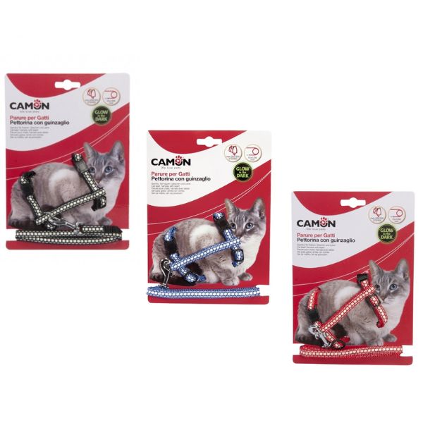 Glow in the Dark Camon è l'elegante parure per gatti composta da pettorina e guinzaglio, disponibile in 3 colori assortiti, che si illumina al buio! Un prodotto unico nel suo genere e mai visto prima, per avere sempre sotto controllo il tuo micio, specie durante la sera.